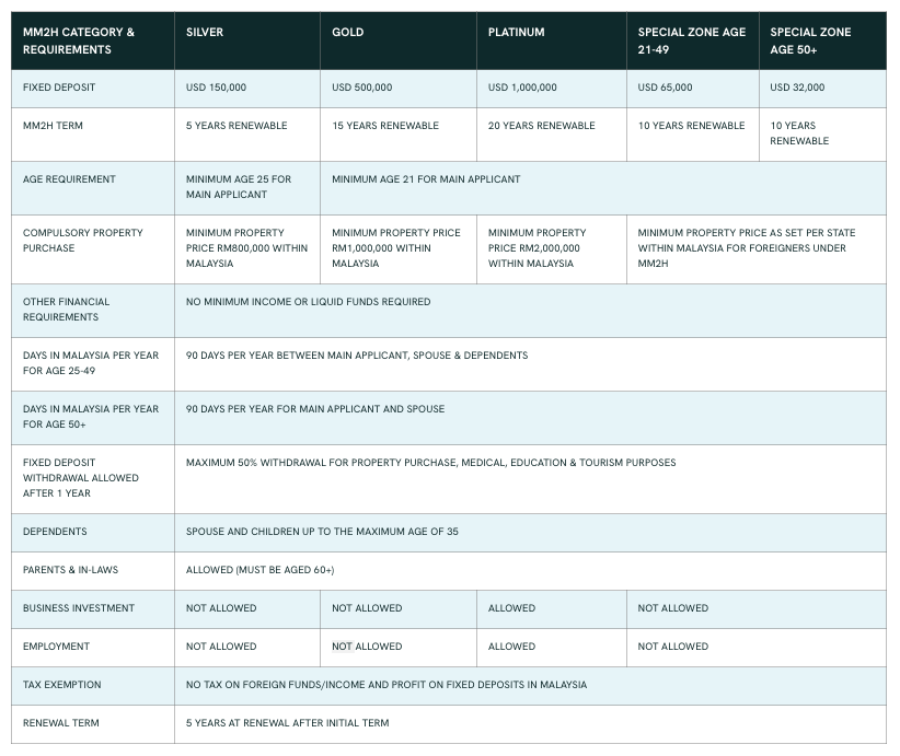 | MM2H TERM | 5 YEARS RENEWABLE | 15 YEARS RENEWABLE | 20 YEARS RENEWABLE | 10 YEARS RENEWABLE | 10 YEARS RENEWABLE |
